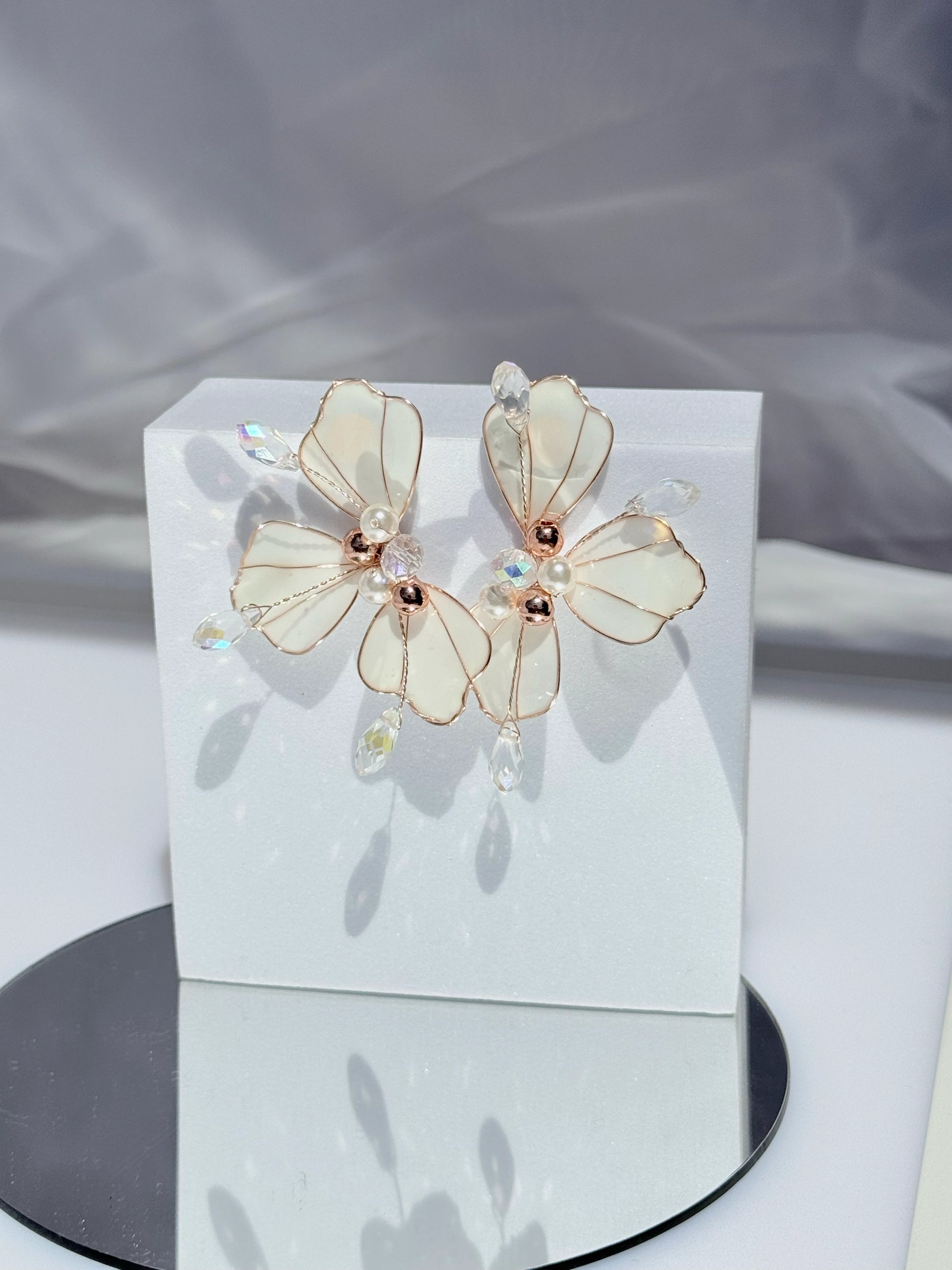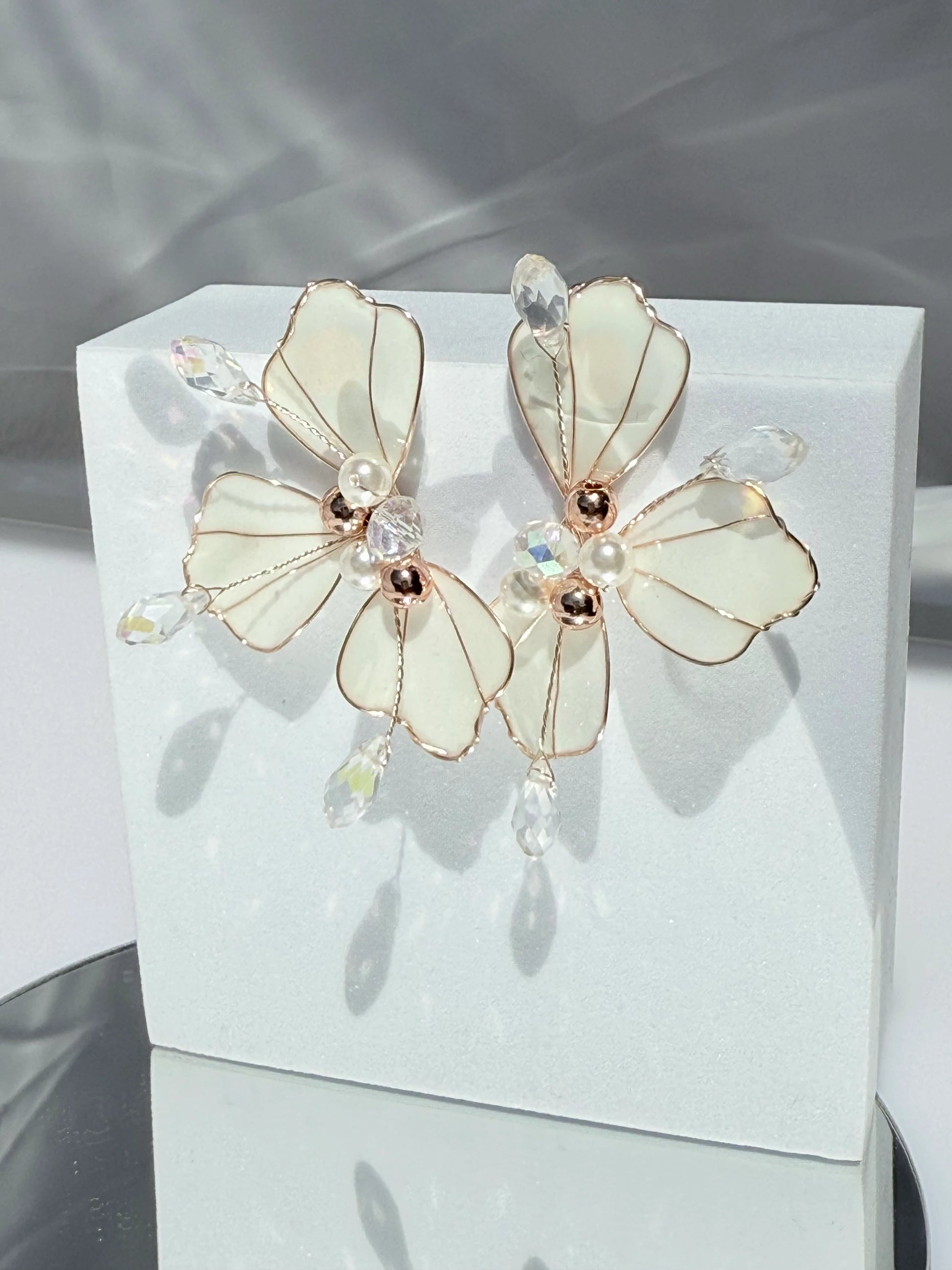 Aros Flores de Cristal Blanco Mate y Rose Gold