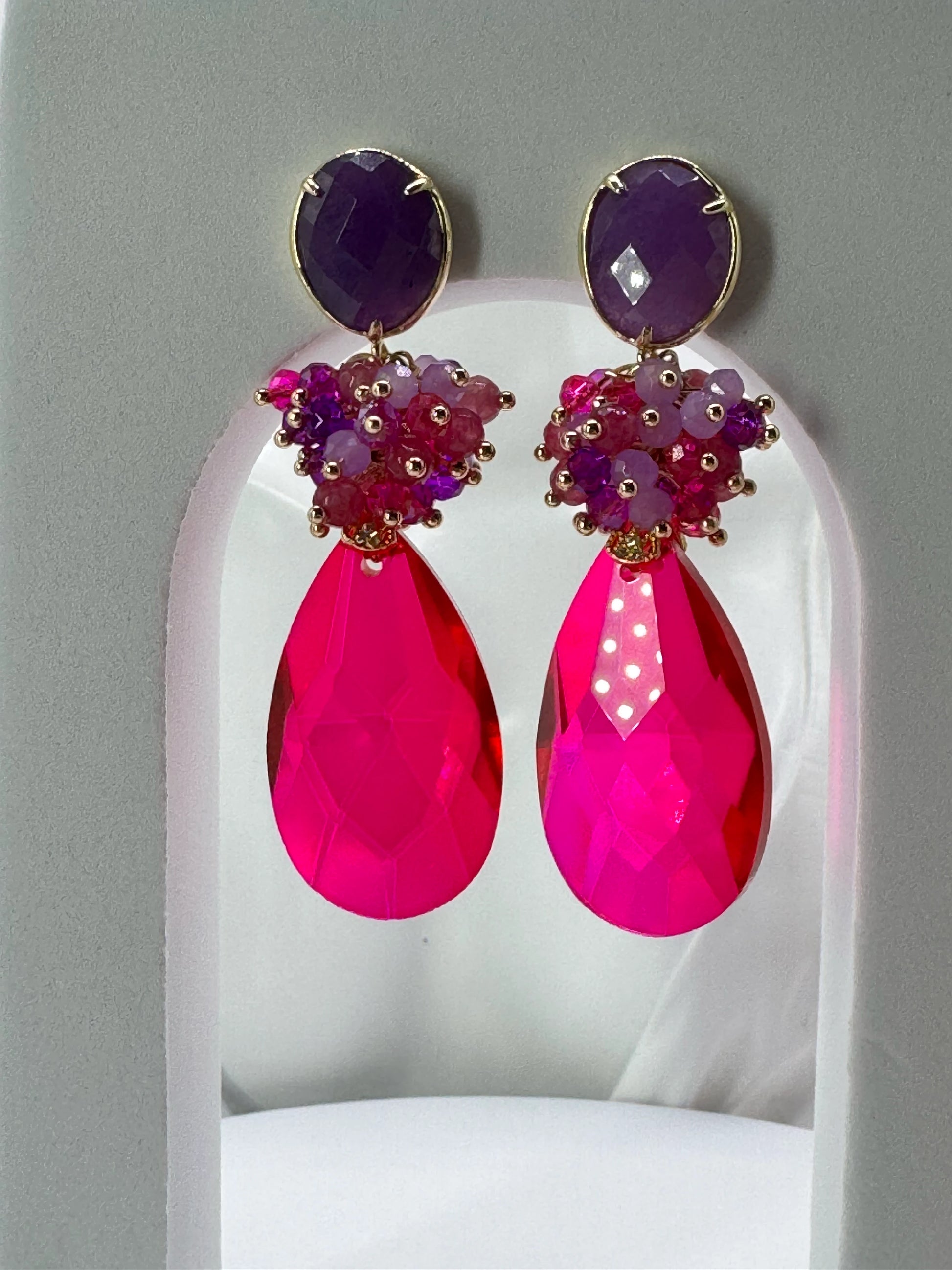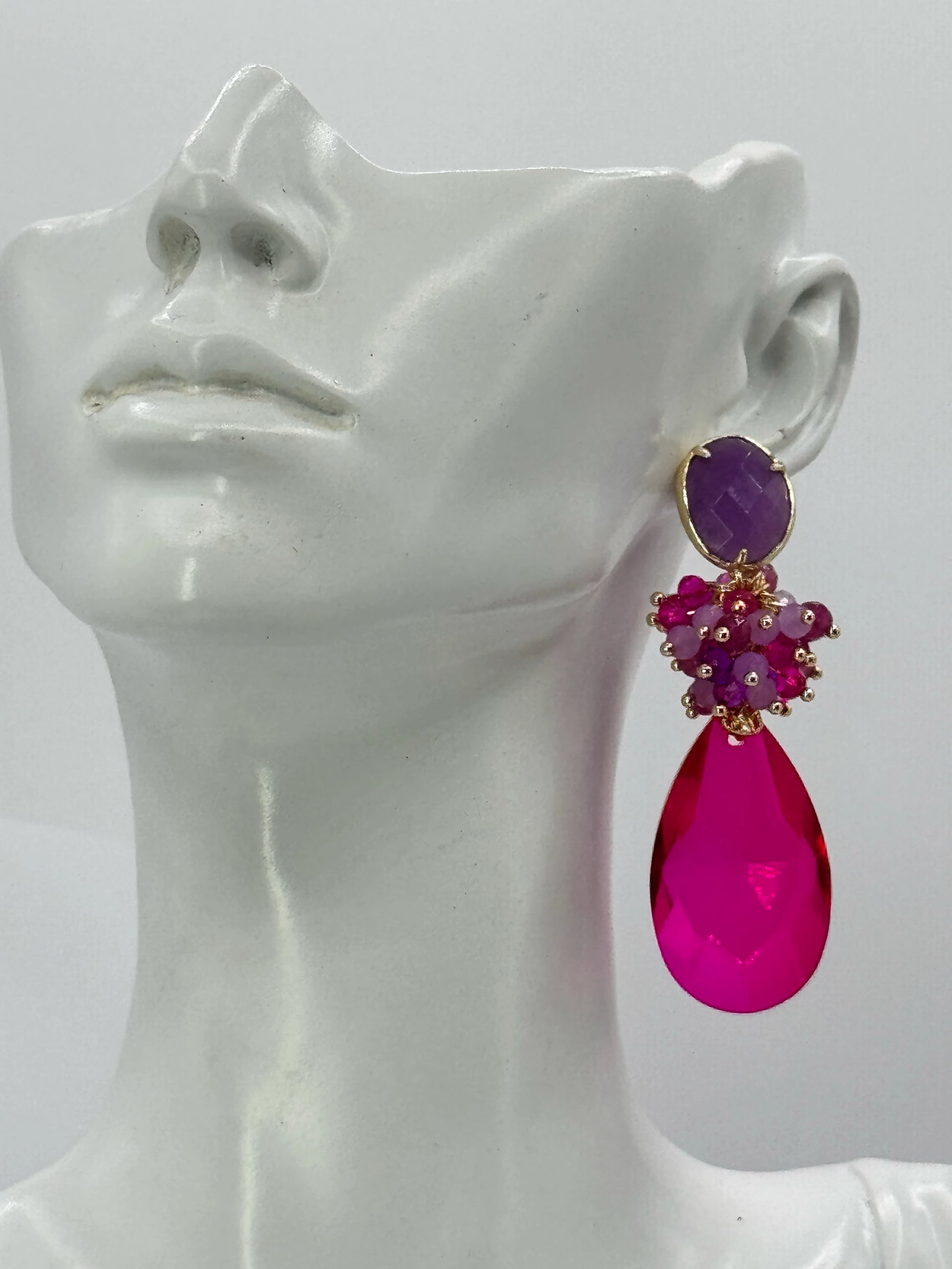 • Gota de cristal facetado fucsia intenso de alta transparencia