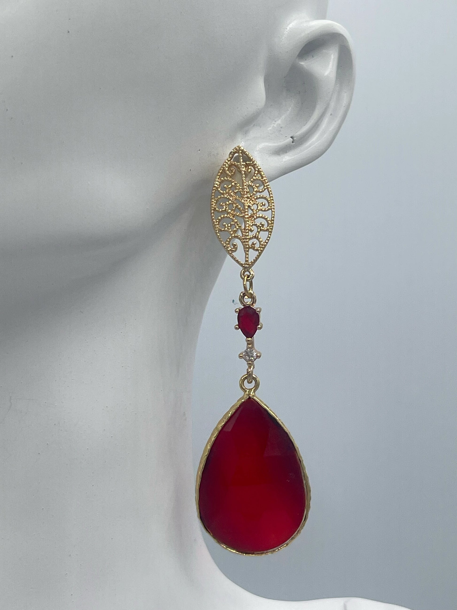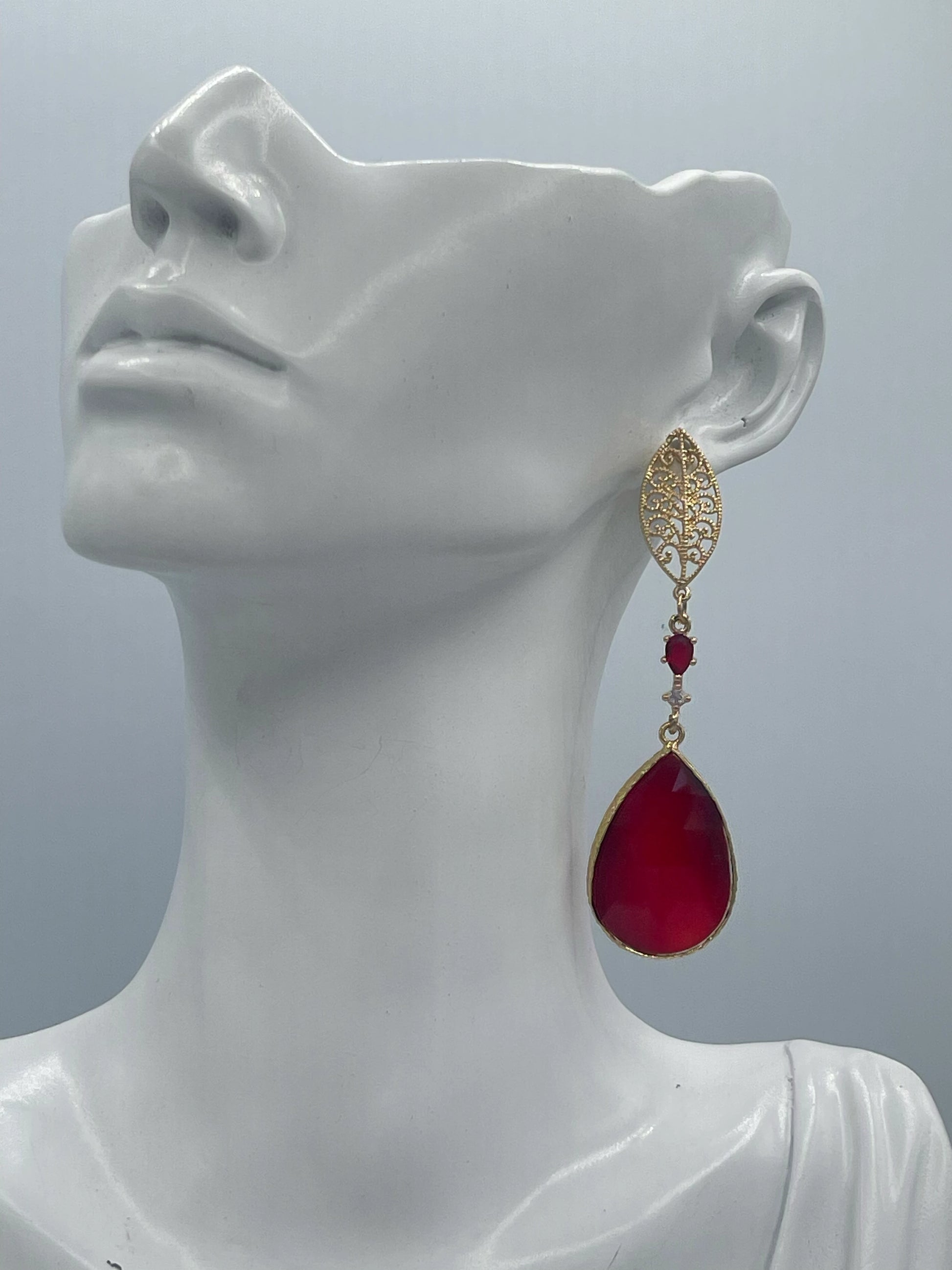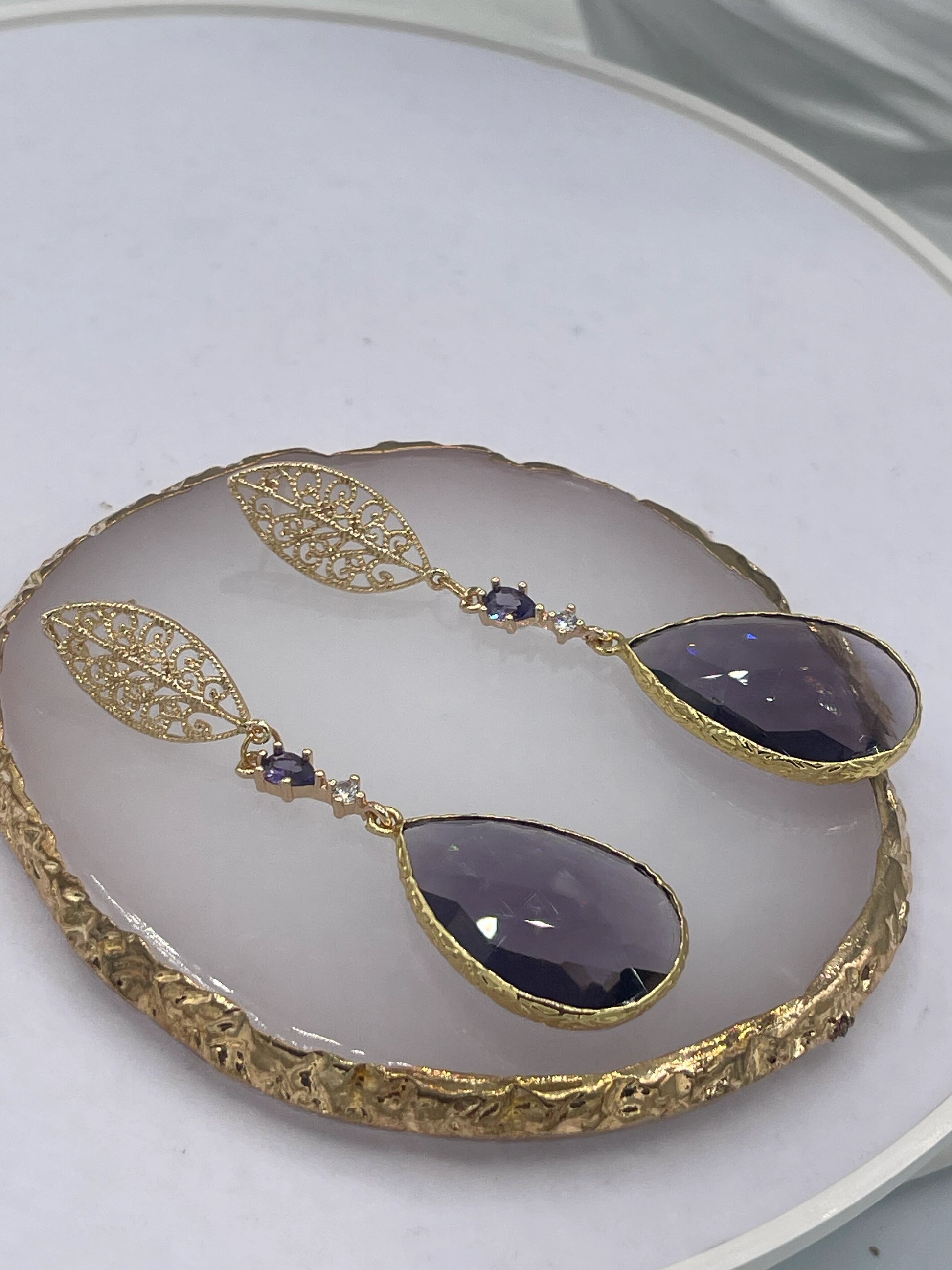 Inspirados en la joyería imperial, combinan una base calada en forma de hoja dorada con un delicado cristal intermedio y una gran gota facetada que refleja la luz con un brillo cautivador.