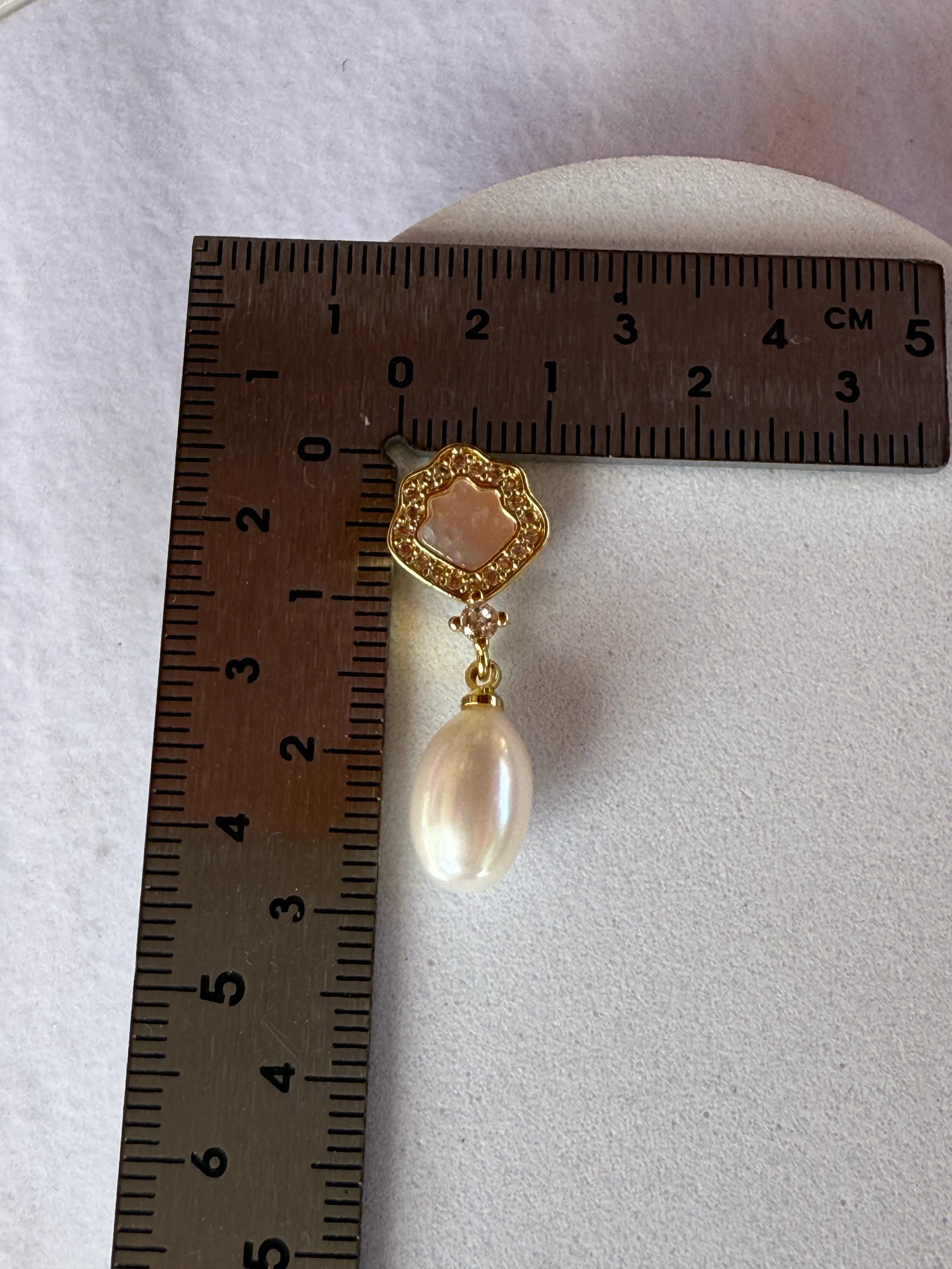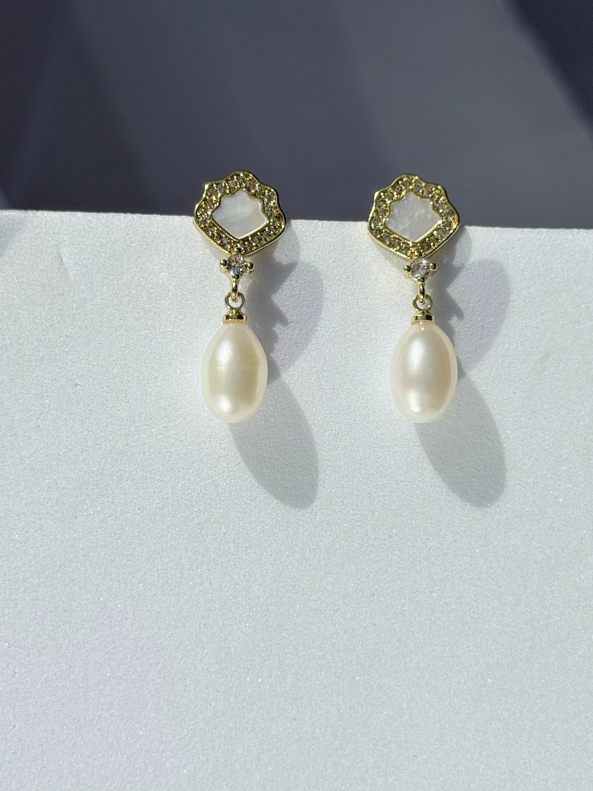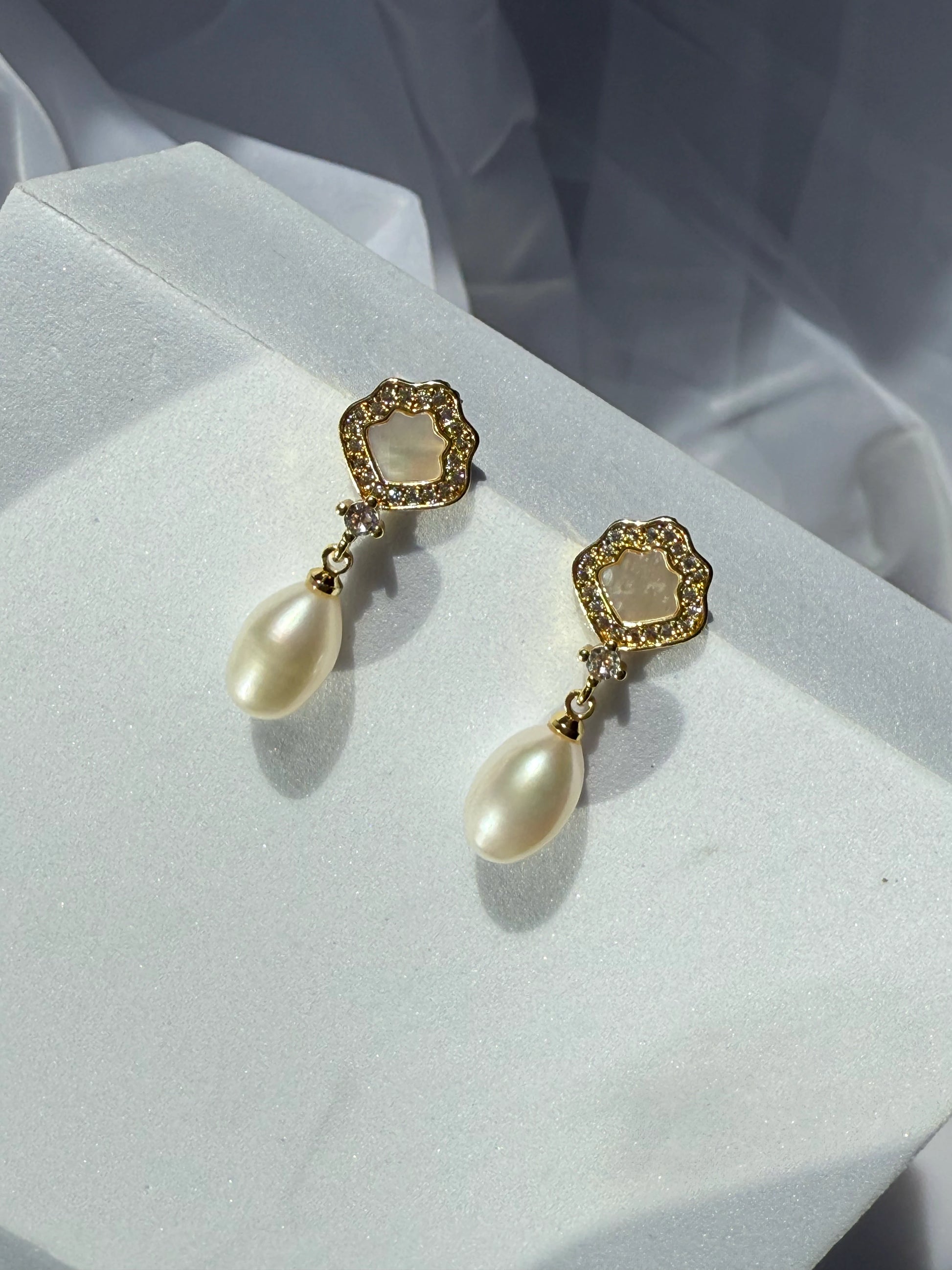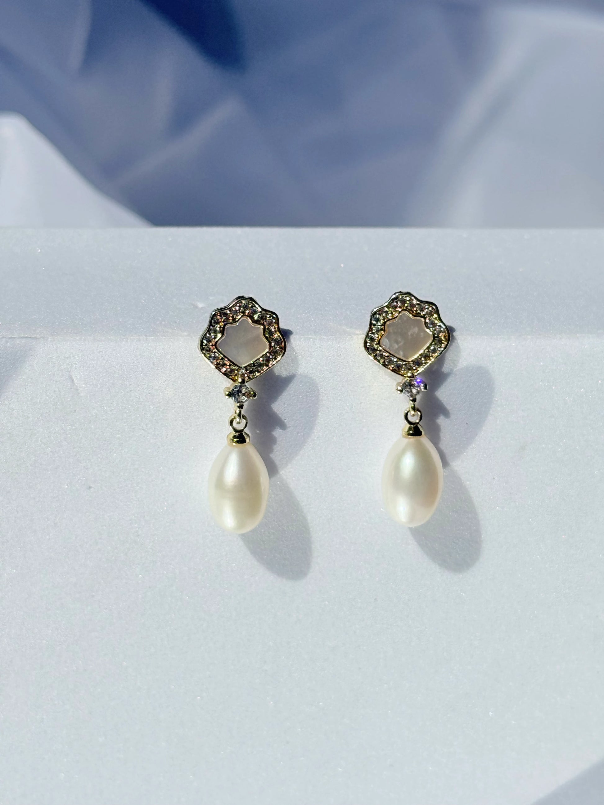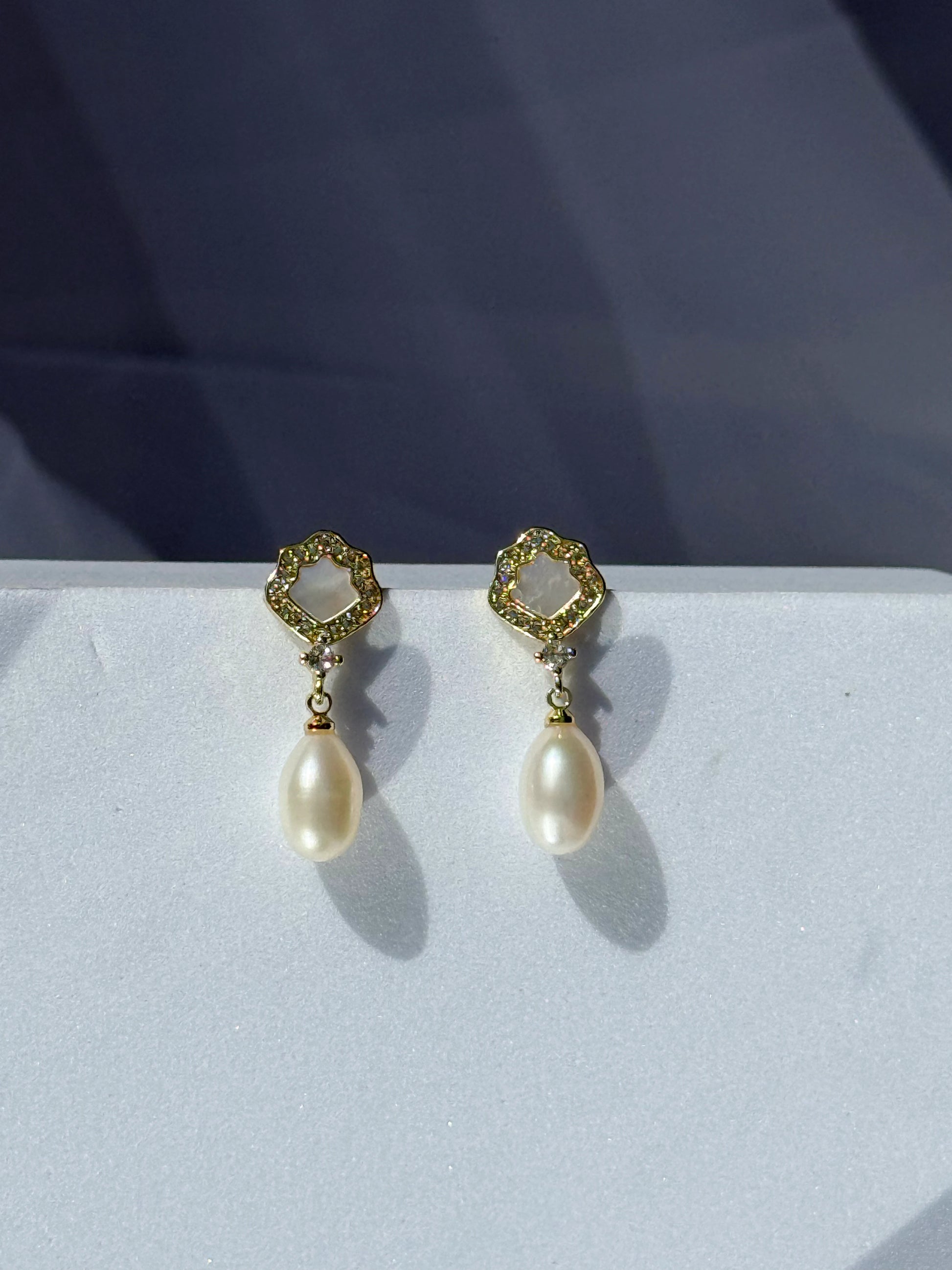 Deslumbra con la elegancia radiante de los Aros de Perla natural -  Nácar  Drop, una pieza que combina brillo, movimiento y distinción. Su base enchapada en oro, con forma orgánica y delicado centro de nácar rodeado de circones, captura la luz con cada gesto. Desde ella cae una perla tipo gota que refleja sofisticación y pureza, creando un contraste sublime entre lo moderno y lo clásico.