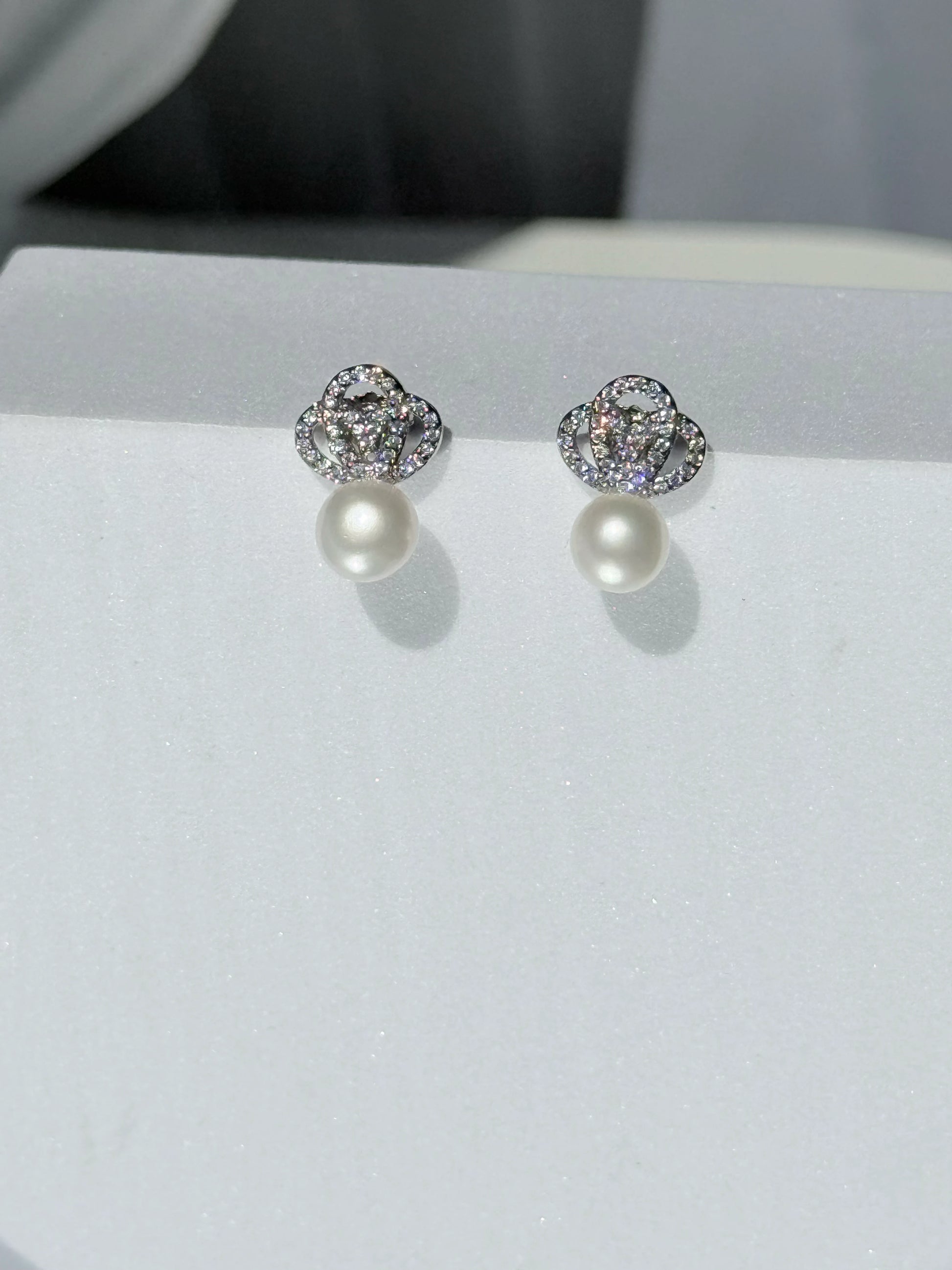 Pequeños en tamaño, pero majestuosos en presencia. Los Aros  Petite Crown capturan la esencia del lujo atemporal con su base en forma de corona pavimentada en circonitas que reflejan cada rayo de luz con un brillo delicado. La perla suspendida añade un toque clásico y refinado, evocando elegancia y realeza en cada detalle.