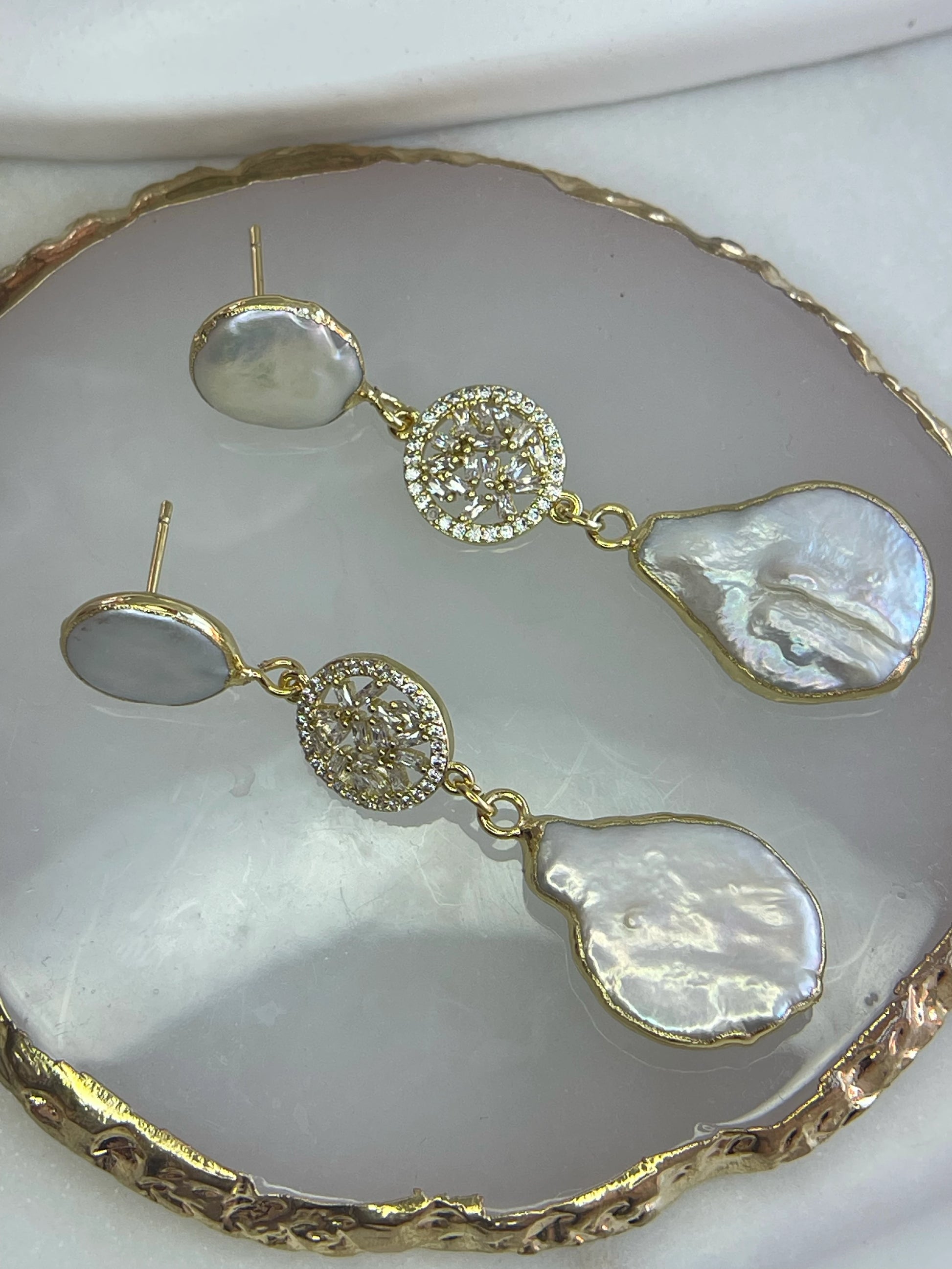 Aros de perla barroca con circonitas o cristal austriaco en oro 18k