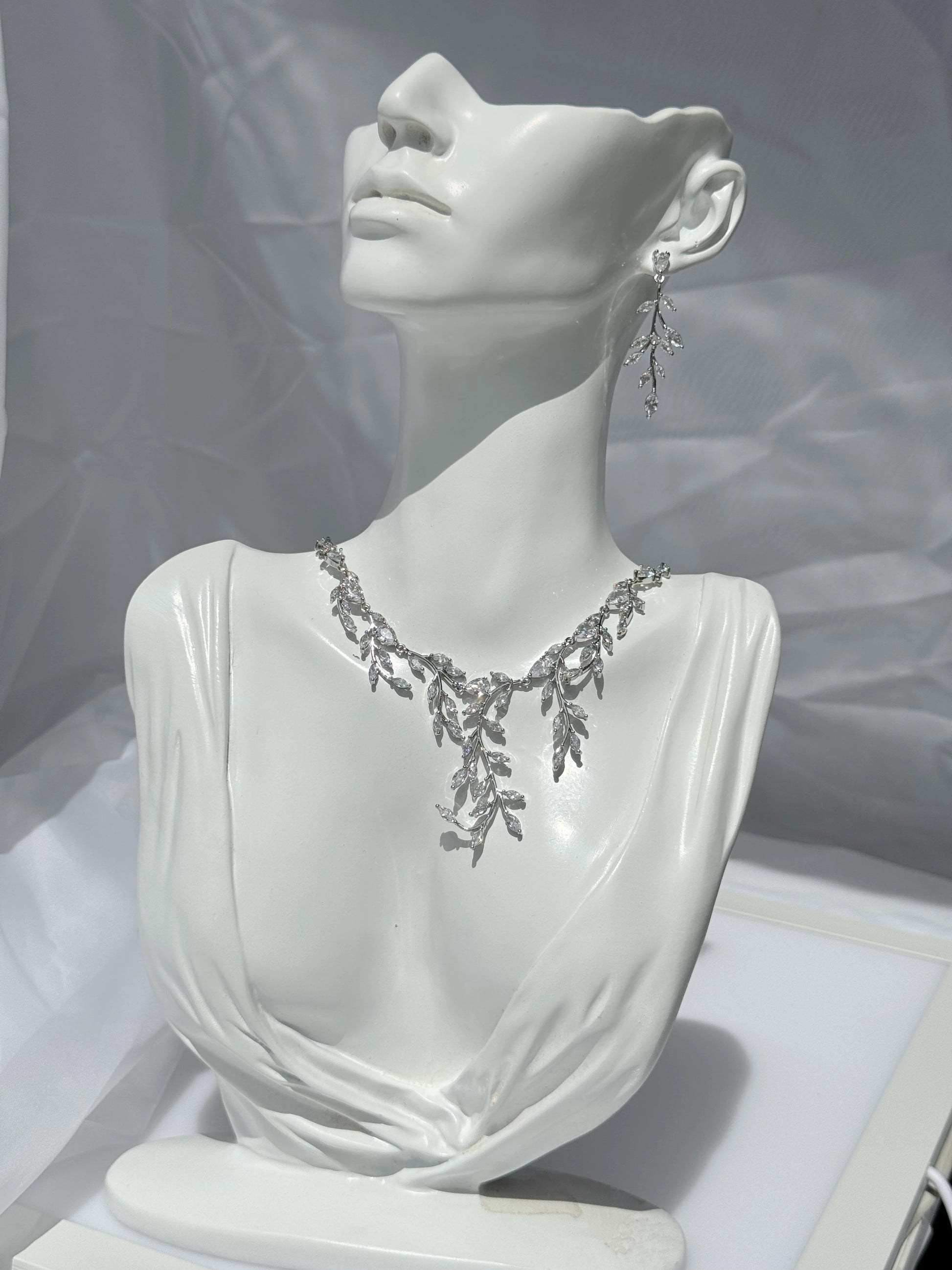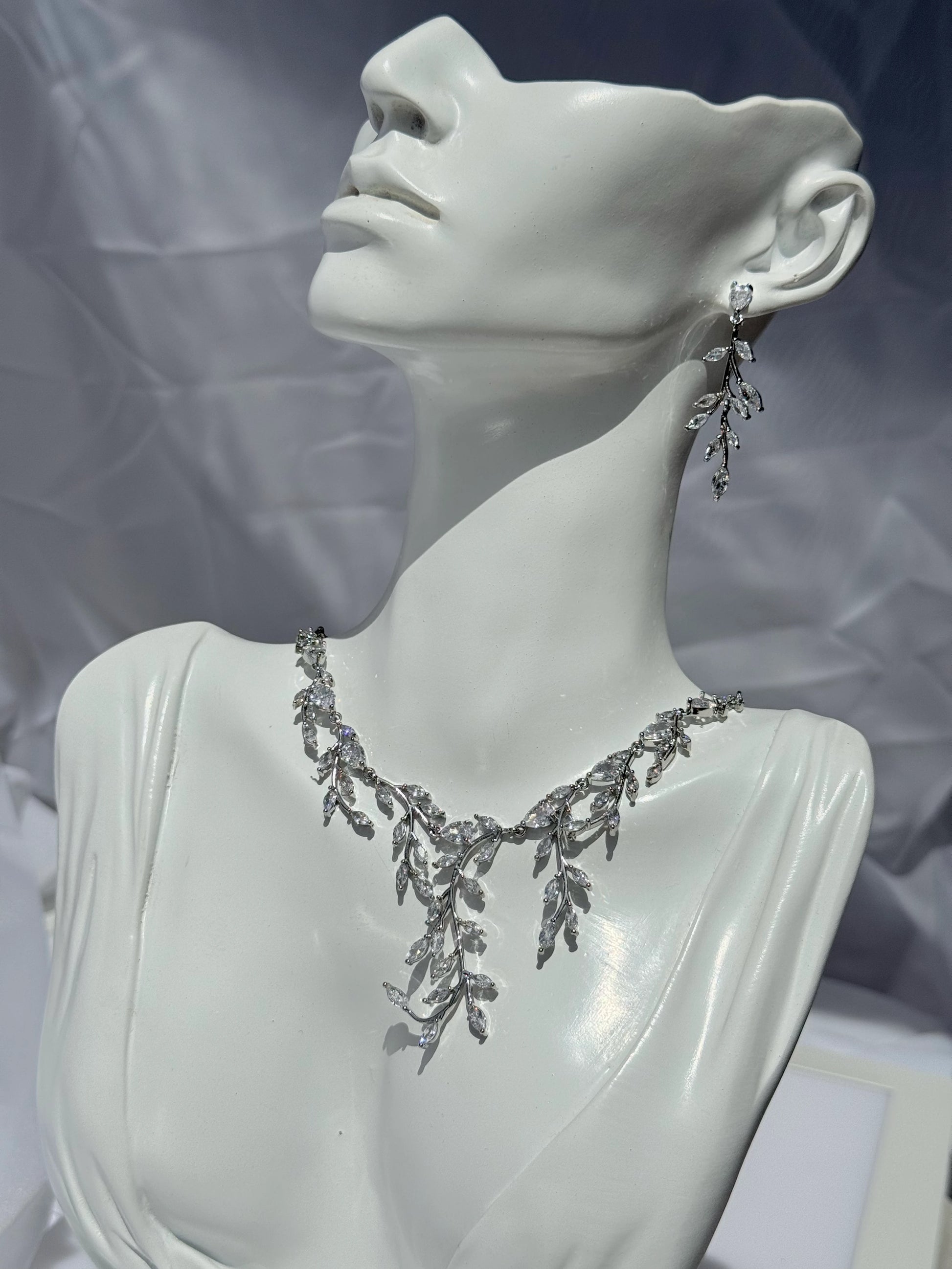 Aros y Collar de Circones- Crystal Leaf Set